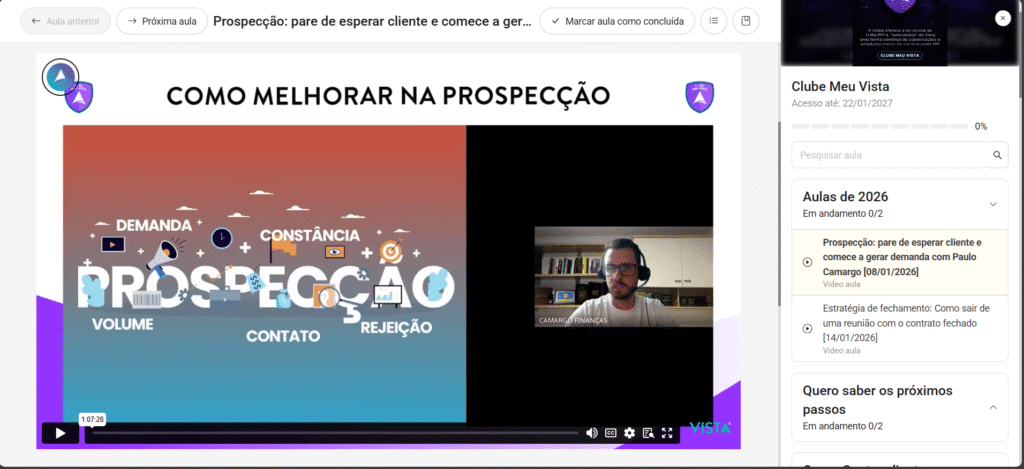 O Ecossistema Meu Vista entrega a tecnologia. O Clube entrega o repertório. Não adianta ter o melhor software se você não tem a estratégia certa para cada perfil de cliente.