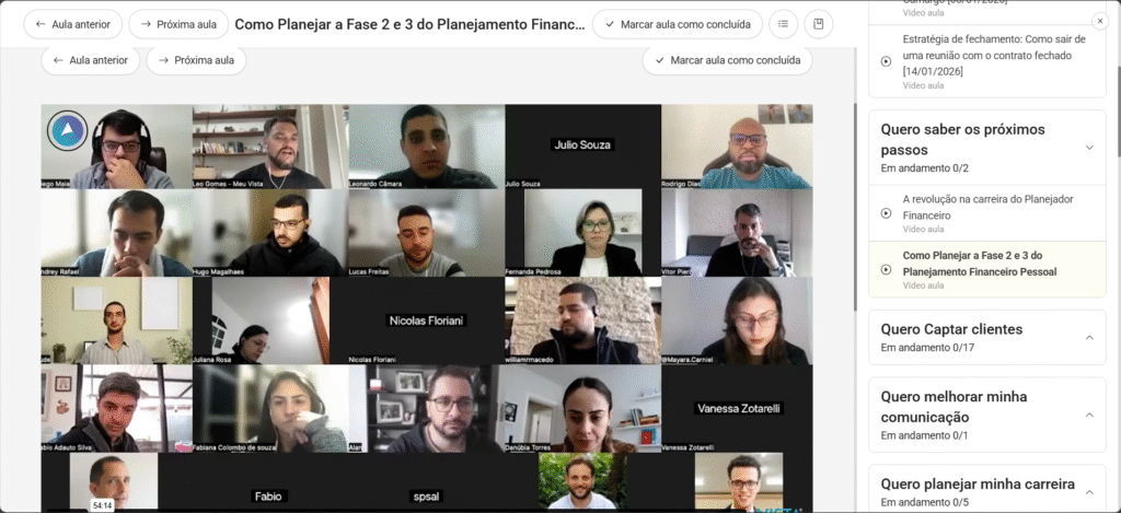 O maior ativo do Clube é o acesso. Aqui, você tem um canal direto com mentores experientes e uma rede de suporte formada por centenas de planejadores que vivem o seu dia a dia.