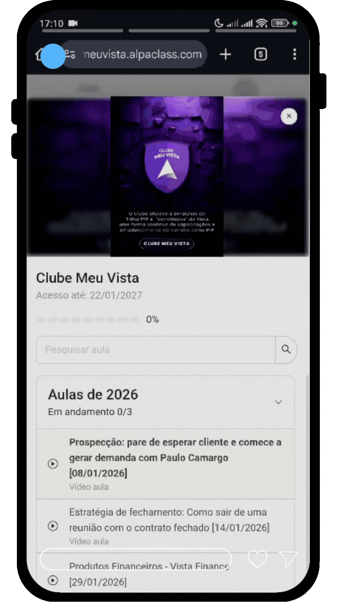 No Clube Meu Vista, você tem acesso contínuo a esse nível de conteúdo, experiência e direcionamento por uma fração desse valor.