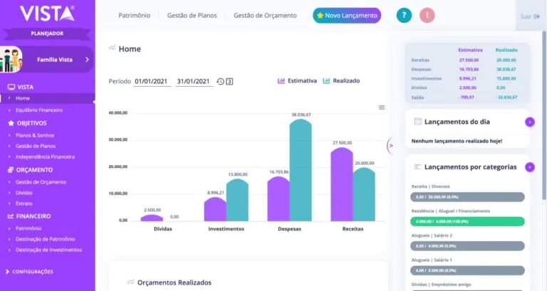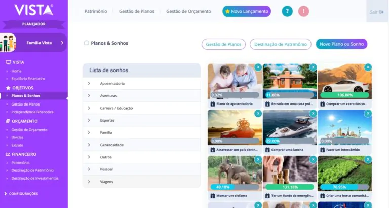 O Vista é uma plataforma direcionada aos diversos tipos de negócios em finanças pessoais. Integra aspectos de uma vida financeira e não apenas o dinheiro, mas receitas, despesas, dívidas, planos, sonhos, patrimônio e principalmente a conexão de todos estes fatores.