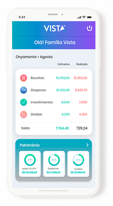 Para o seu cliente, o Vista é a facilidade, a simplicidade e a organização que ele precisa para entender que o processo de planejamento financeiro não precisa ser complicado.